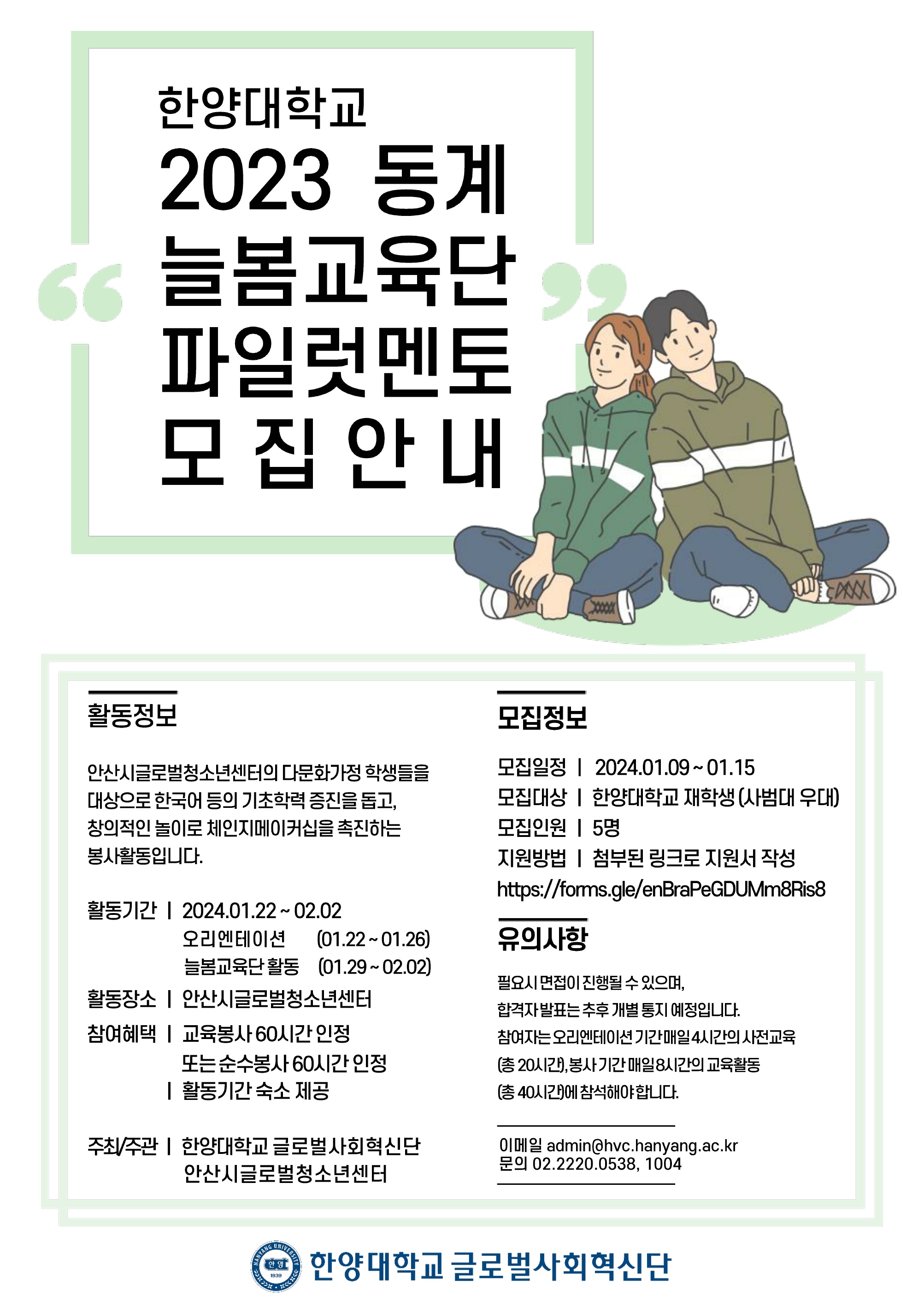 [모집]늘봄교육단 파일럿멘토 모집 안내 (사범대우대)
