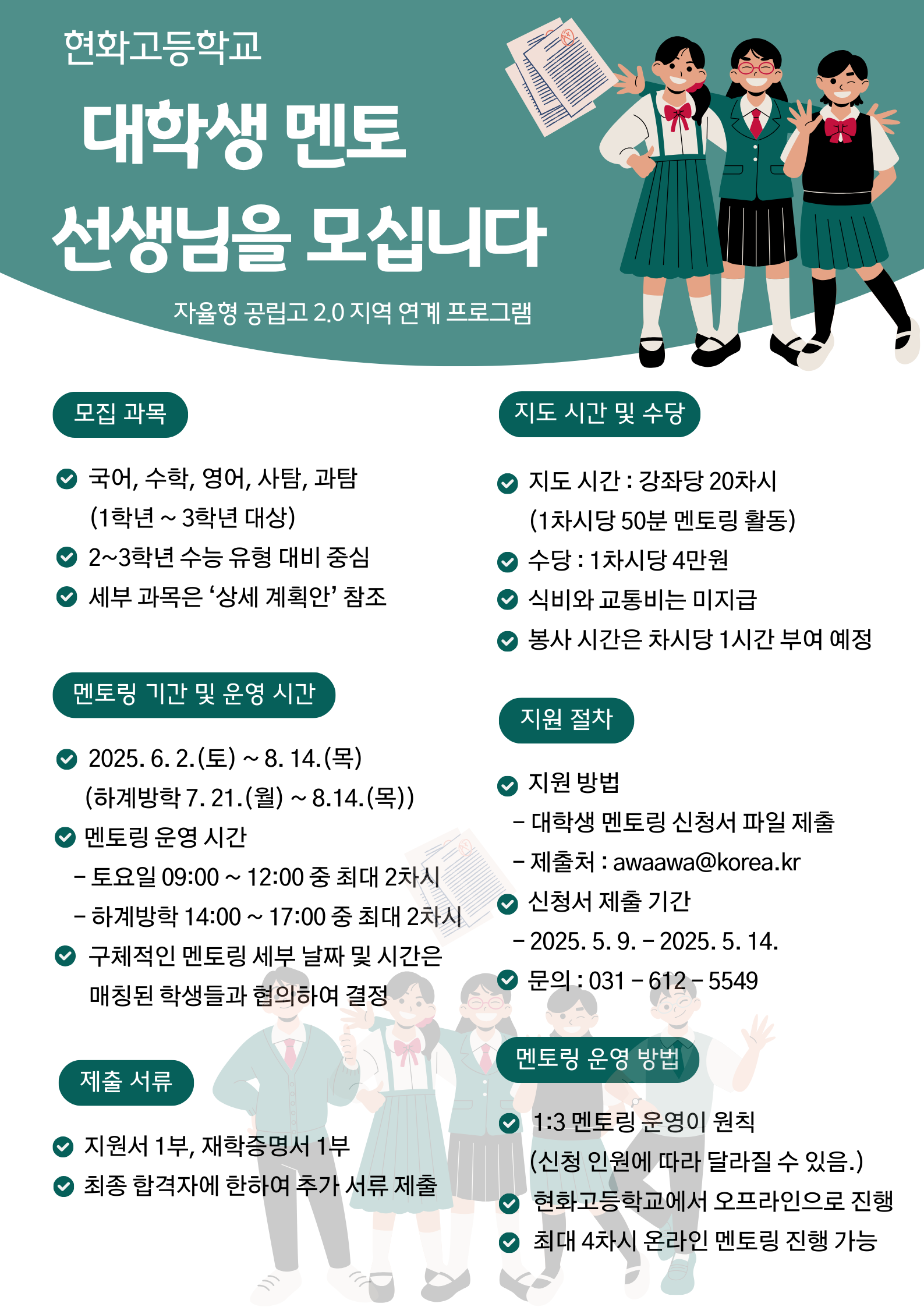 [모집]현화고등학교 대학생 멘토링 교육봉사 운영 및 신청 안내