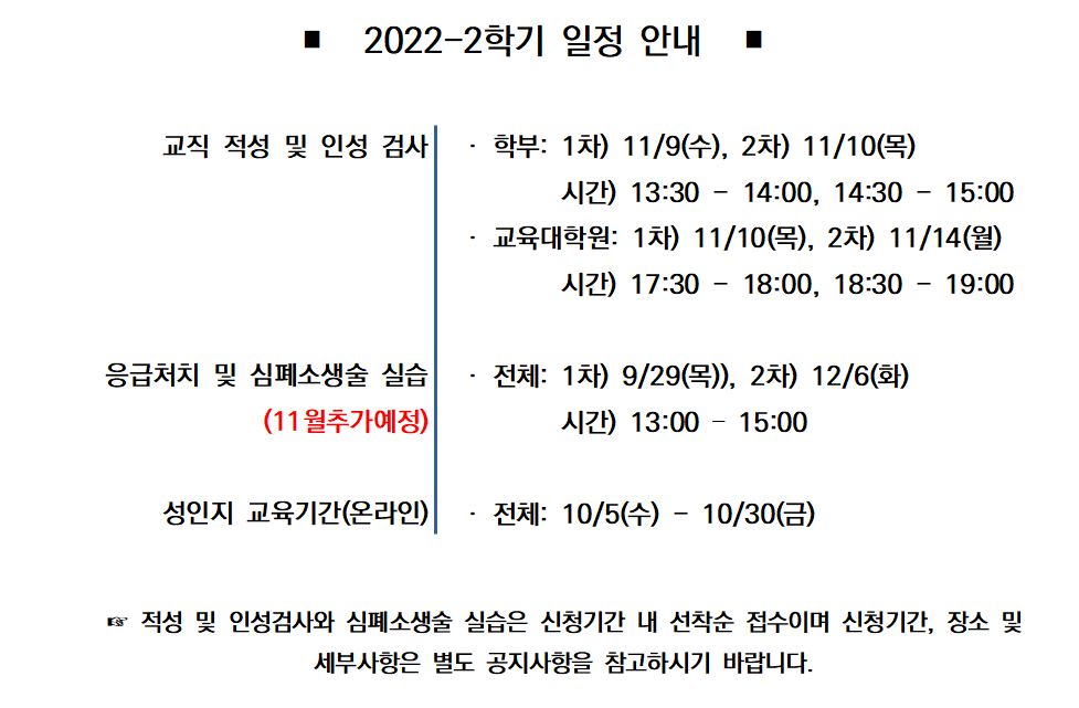 [전체]2022-2학기 교직관련 기타 일정 안내