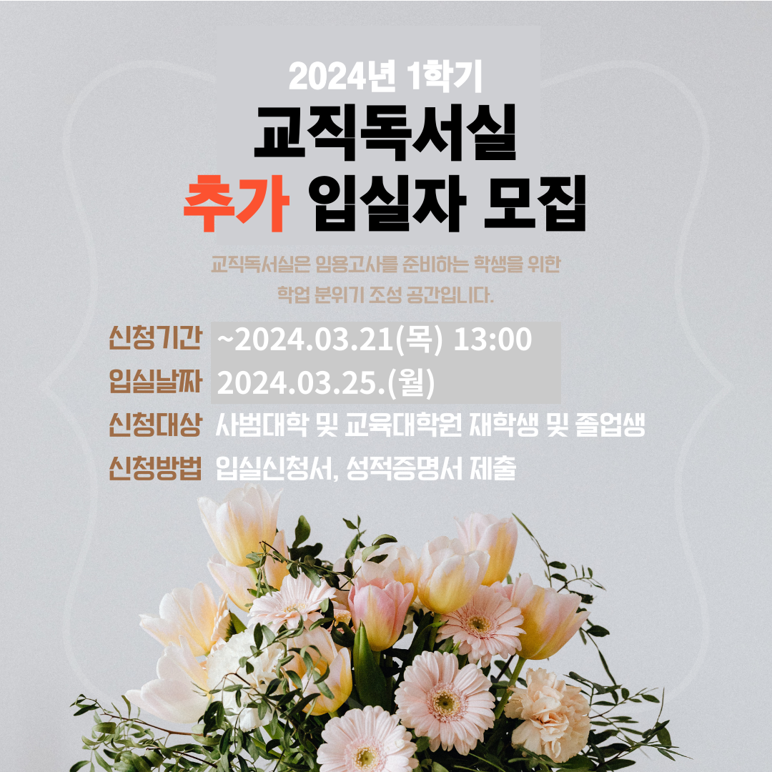 ※ 사범대학 교직독서실 모집 관련하여 문의 사항이 있을 경우 조교에게 연락 바랍니다.